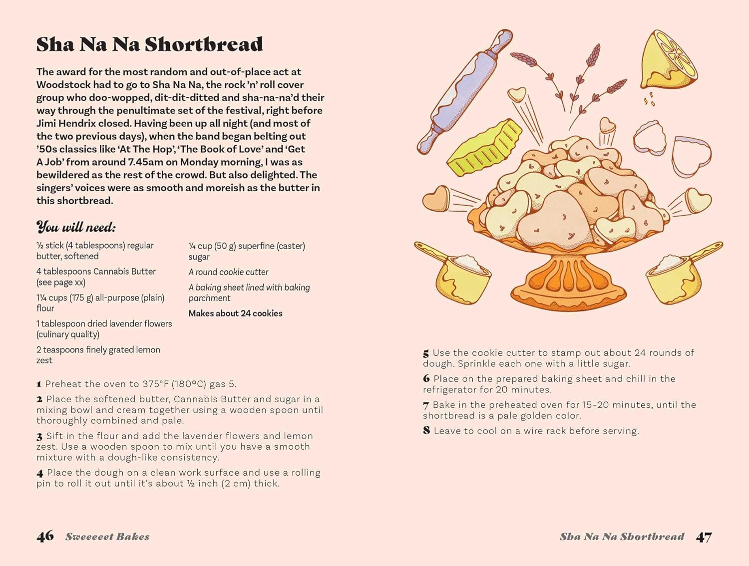 I’m not going to lie—I was high pretty much the whole time. As I imagine most of the other half million people there were, too. We smoked, we danced, we laughed, we hugged… we lived. Over the years, I slowly transformed from that young, carefree hippie with flowers in her hair to a respectable teacher, to a PTA mom, to an empty nester, to who I am today: a silver-haired senior who has recently rediscovered her penchant for pot. So, in the spirit of sharing, caring, and being daring, I have had a blast putting together this book, filled with my favorite cannabis-laced recipes from Hendrix Hash Brownies to a Muddy Milkshake that I hope will get you nicely buzzed. I’ve been reminiscing as I stir, chop, bake, and simmer, reliving my far-out, groovy, wonderful Woodstock days. I even tie-dyed my apron. Peace.