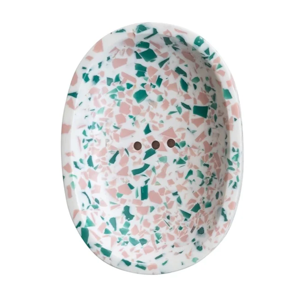 Terrazo Finish Resin Soap Dish - White With Pink & Teal