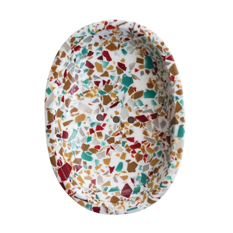Terrazo Finish Resin Soap Dish - White With Red & Teal