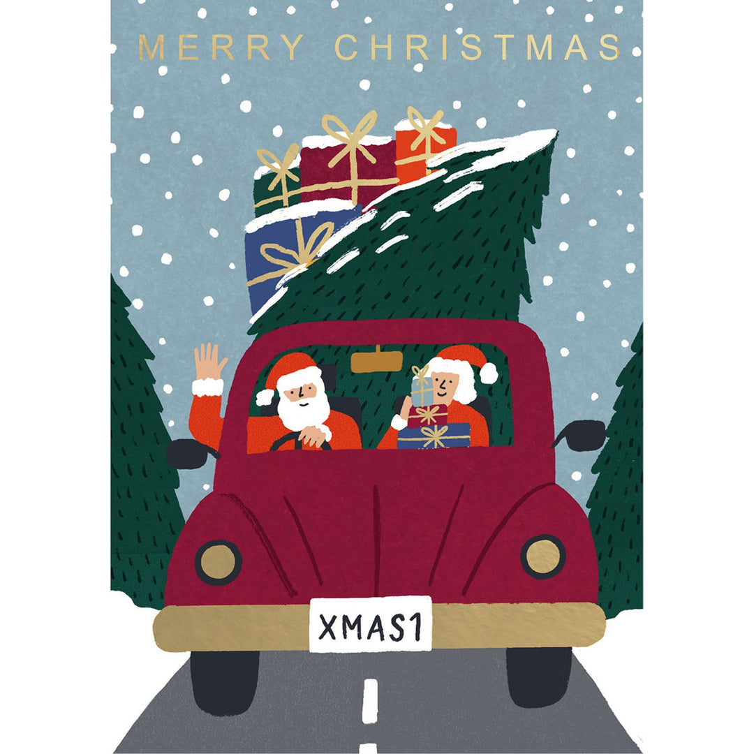 Santa And Mrs. Claus Driving Holiday Greeting Card