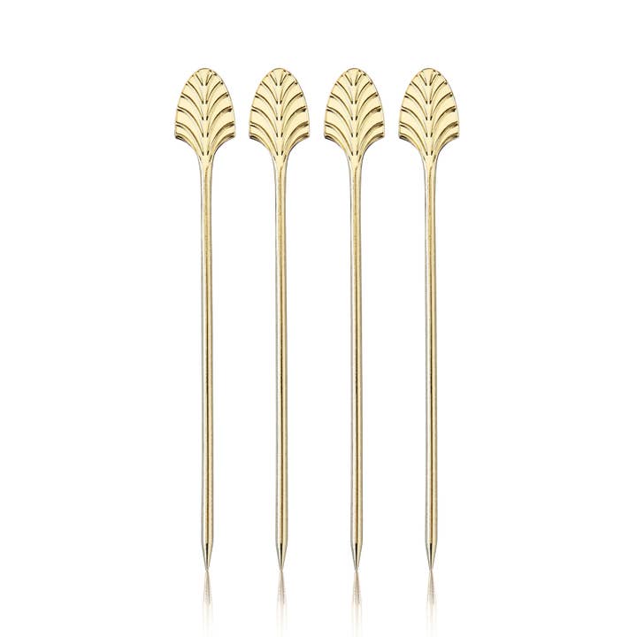 Art Deco Reusable Gold-Plated Cocktail Picks - Set Of 4