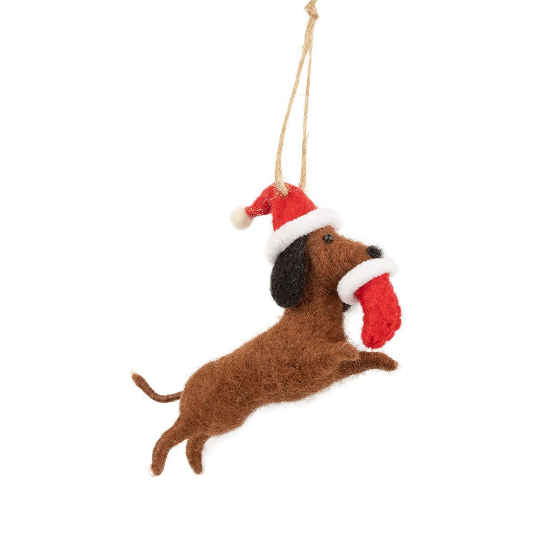 Dog With A Stocking Felt Ornament