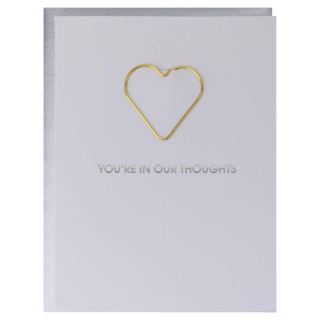 You're In Our Thoughts - Heart Paper Clip Letterpress Greeting Card