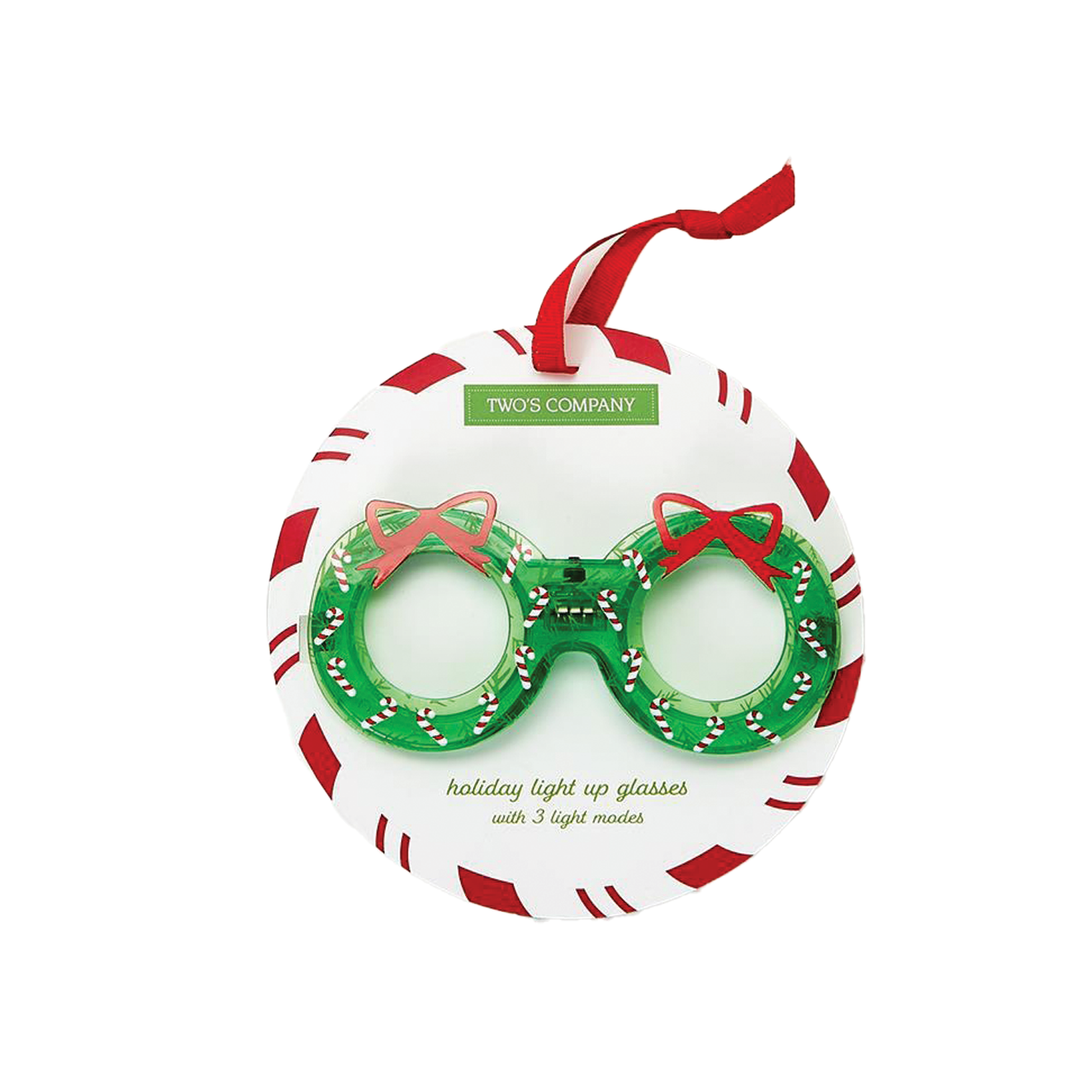 Holiday Cheer Light Up Novelty Glasses - Candy Cane Wreath