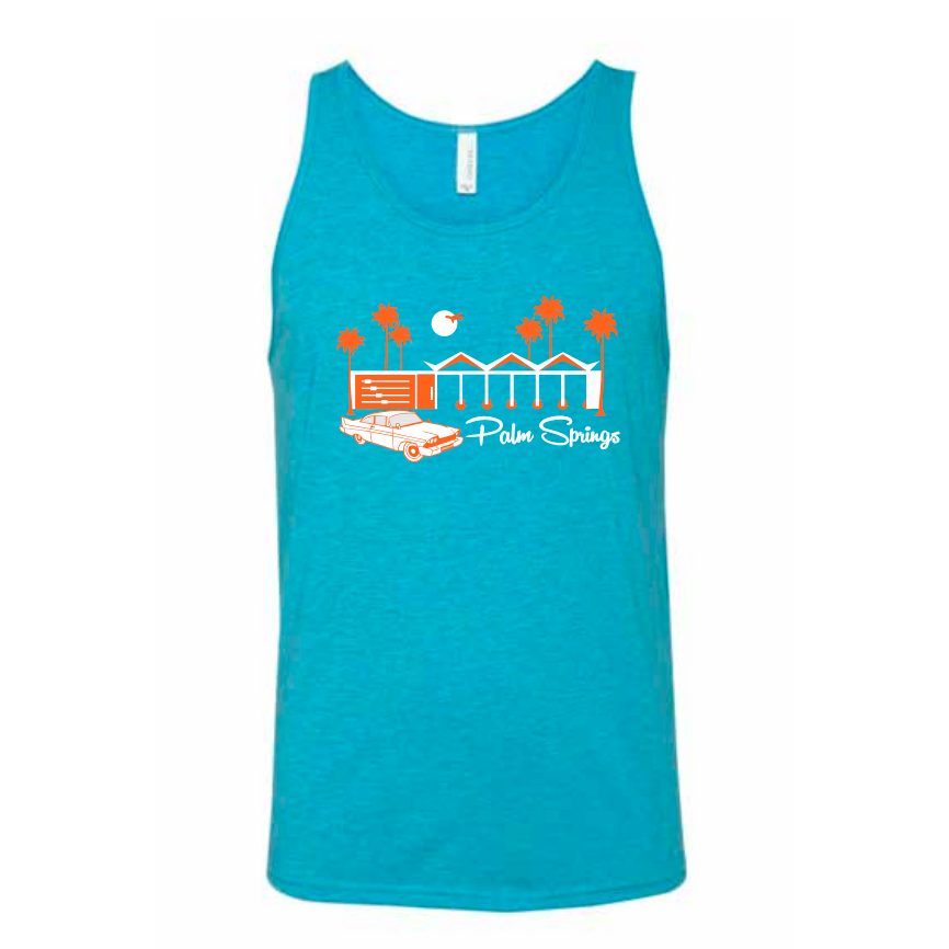 Twin Palms Unisex T-Back Tank Top - Tahiti Blue/Hot Pink