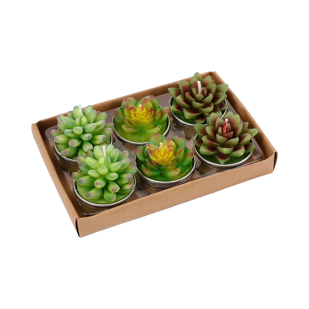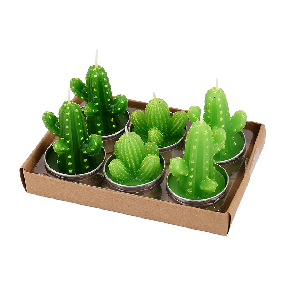 Sculpted Cactus T-Light, Boxed set Blue Flower