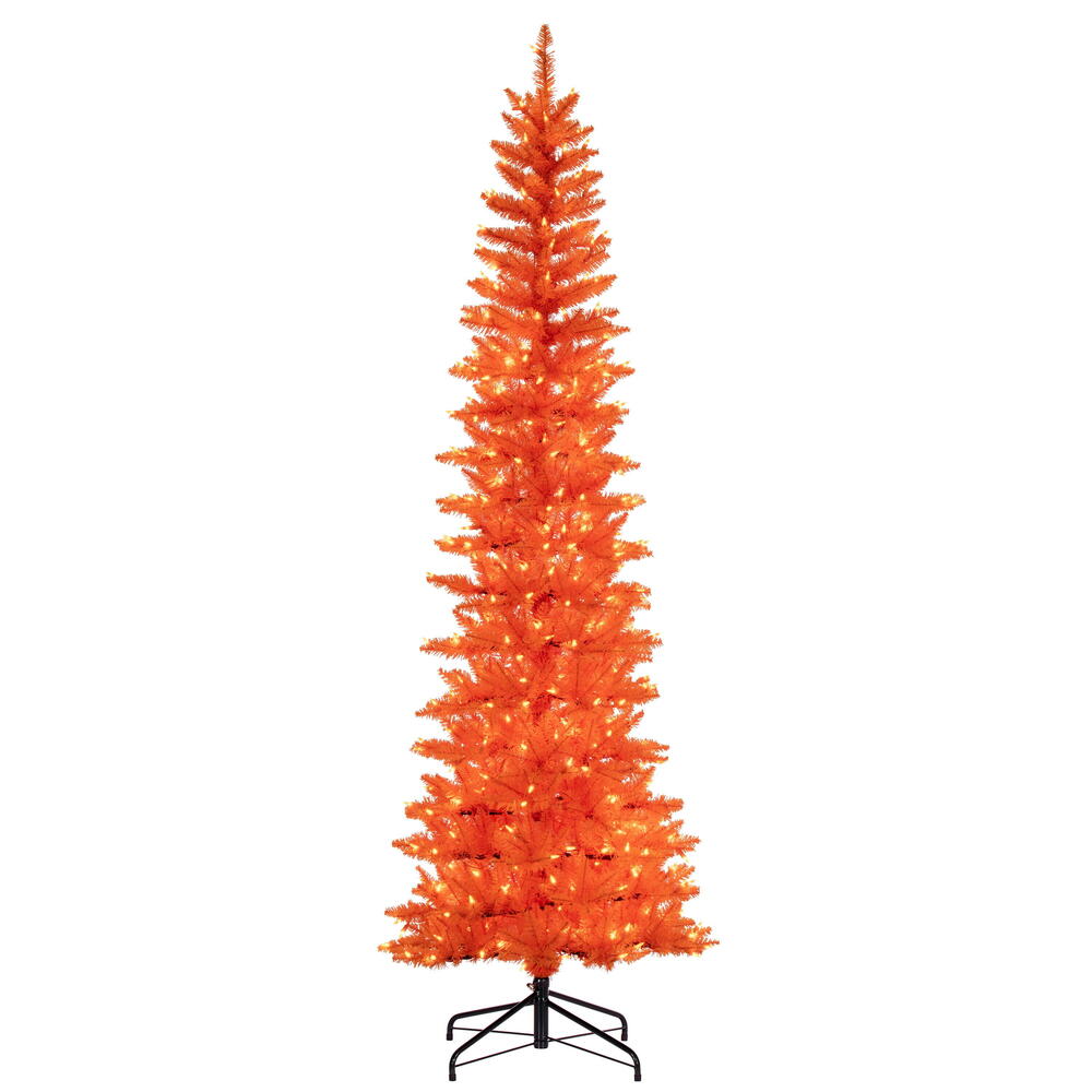Orange Pencil Tree - 7.5' x 32" Pre-Lit with 450 Dura-Lit Orange LED Mini Lights