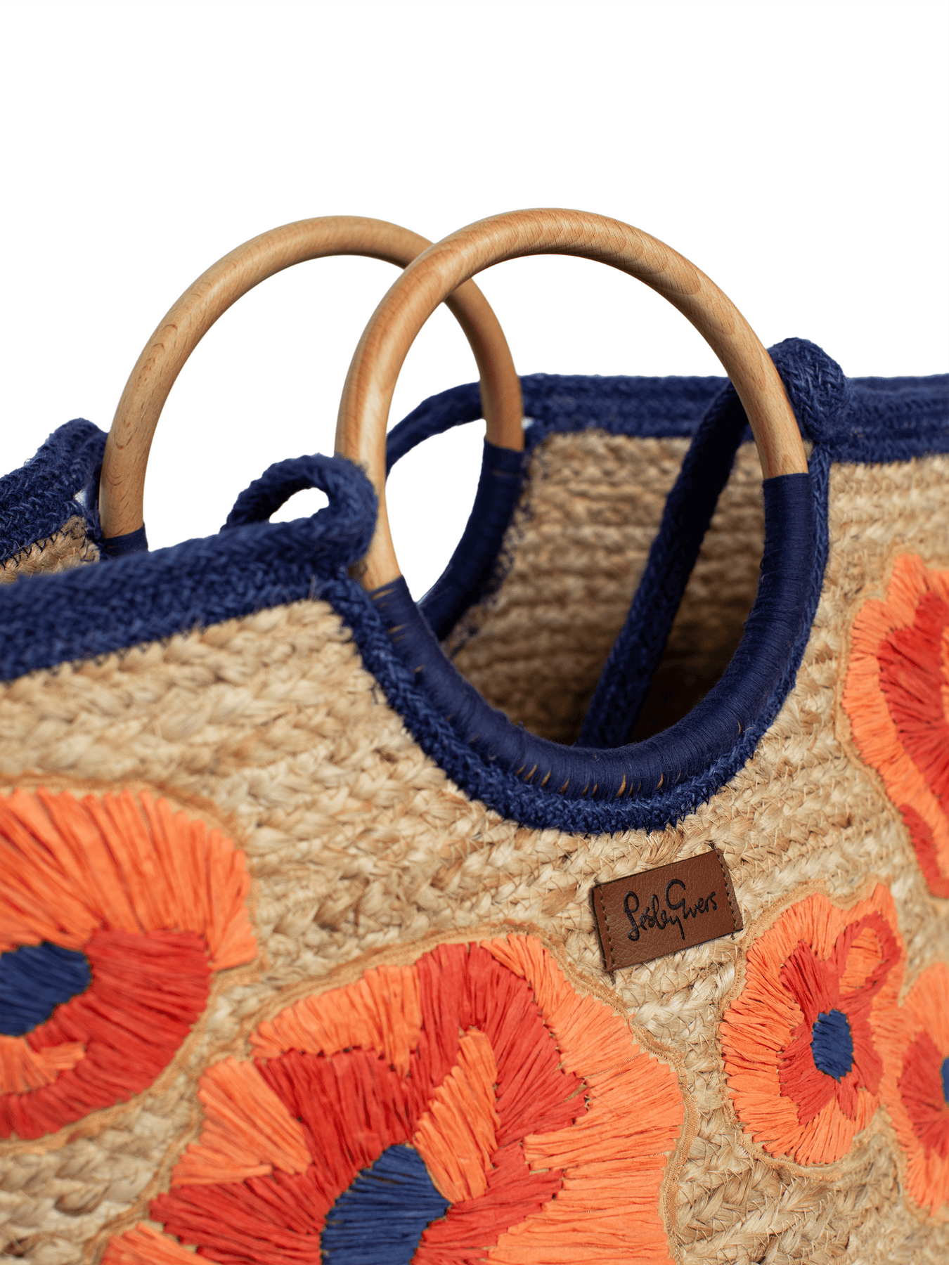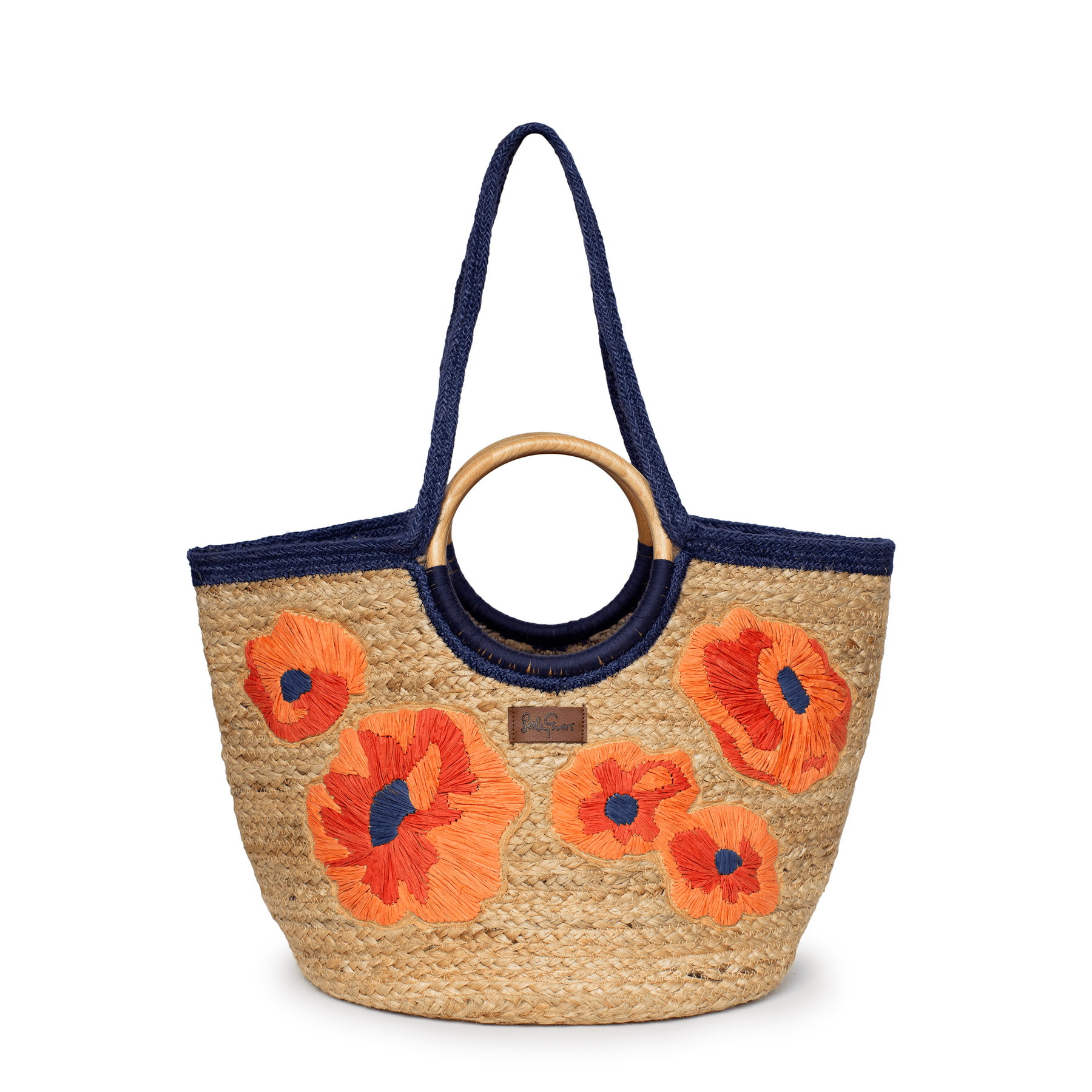 This woven jute market tote brings together natural texture and cheerful design. Embroidered poppies inspired by our Bouquet Bliss print add a bold touch, while the dual shoulder straps and wood handles make it easy to grab and go. Whether you’re headed to the market, beach, or a sunny day outing, it’s the perfect carryall with personality.