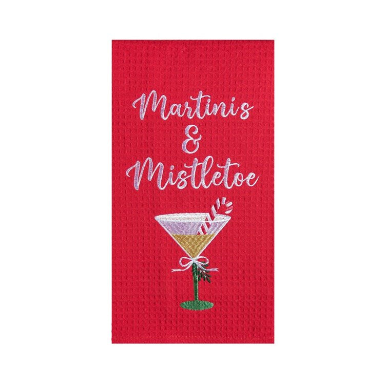 Martini & Mistletoe Waffle Weave Kitchen Towel
