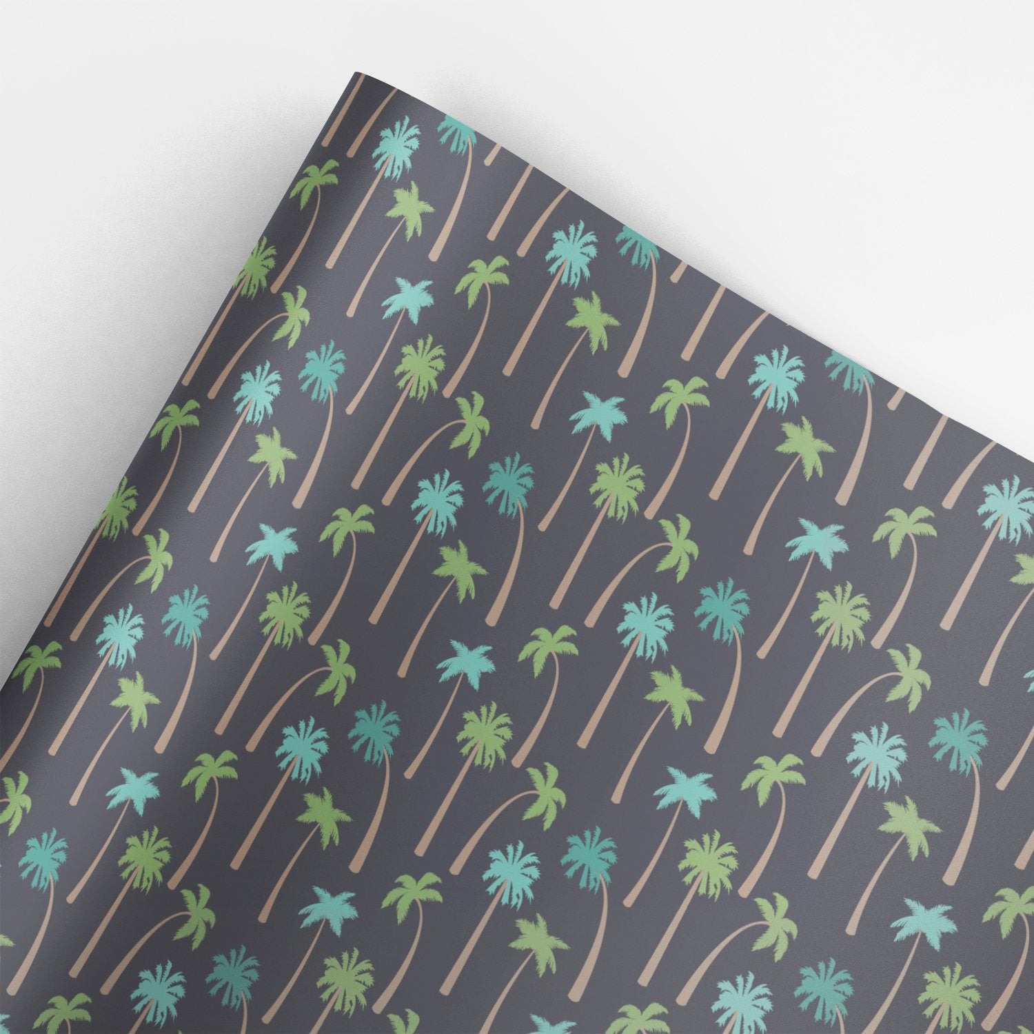 Designed to coordinate with our Palm Springs Holiday gift wrap, this wrapping paper featuring beautiful palm trees on a charcoal black background can work well on its own as the perfect birthday gift wrap.