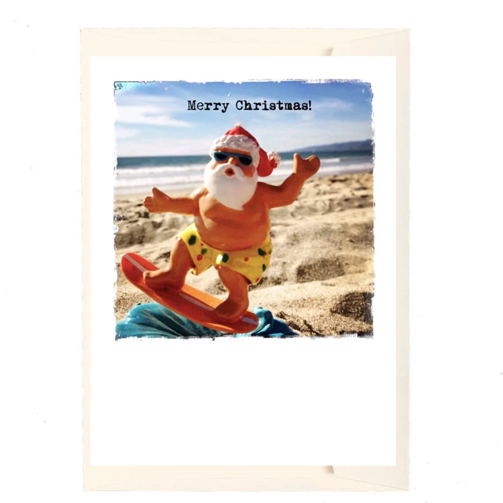 Santa On A Surfboard Holiday Card