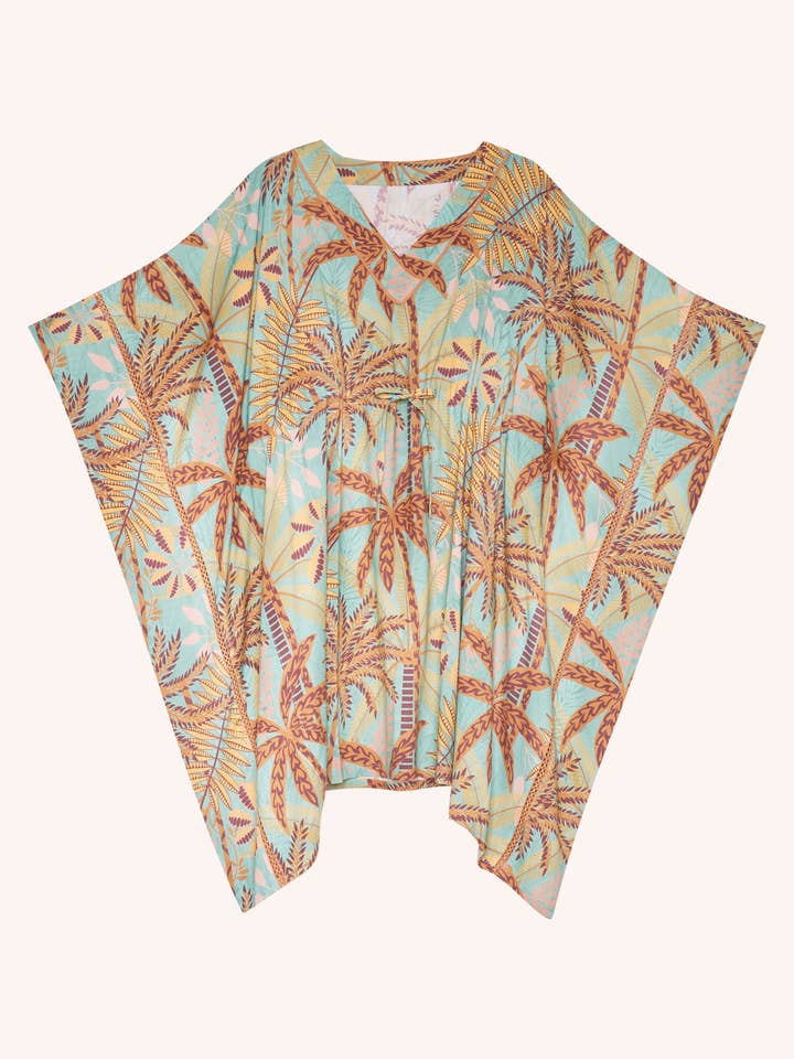 Did someone say summer feeling? Dive into a world of patterned palms and feel surrounded by summertime! Not just a look, a vibe! With art deco inspirations, this cover up is perfect for the beach, by the pool or wearing with denim shorts around the resort.
