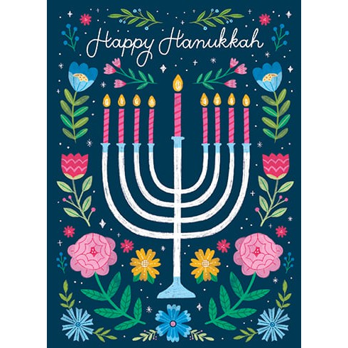 Menorah Flowers Holiday Card