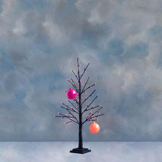 Black Twig Tree - 4' Pre-Lit With 48 Purple & Orange LED Lights