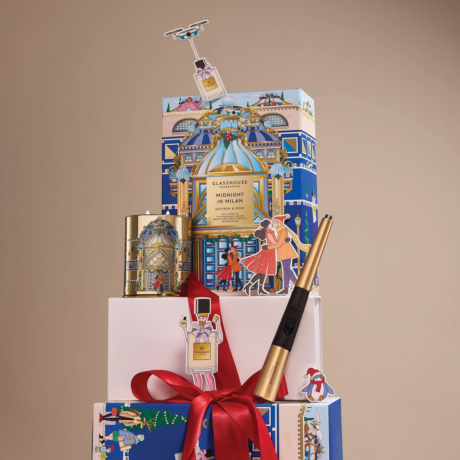 Illuminate the holiday season with our special edition festive Midnight In Milan Candle paired with our new USB rechargeable Arc Wand Lighter.