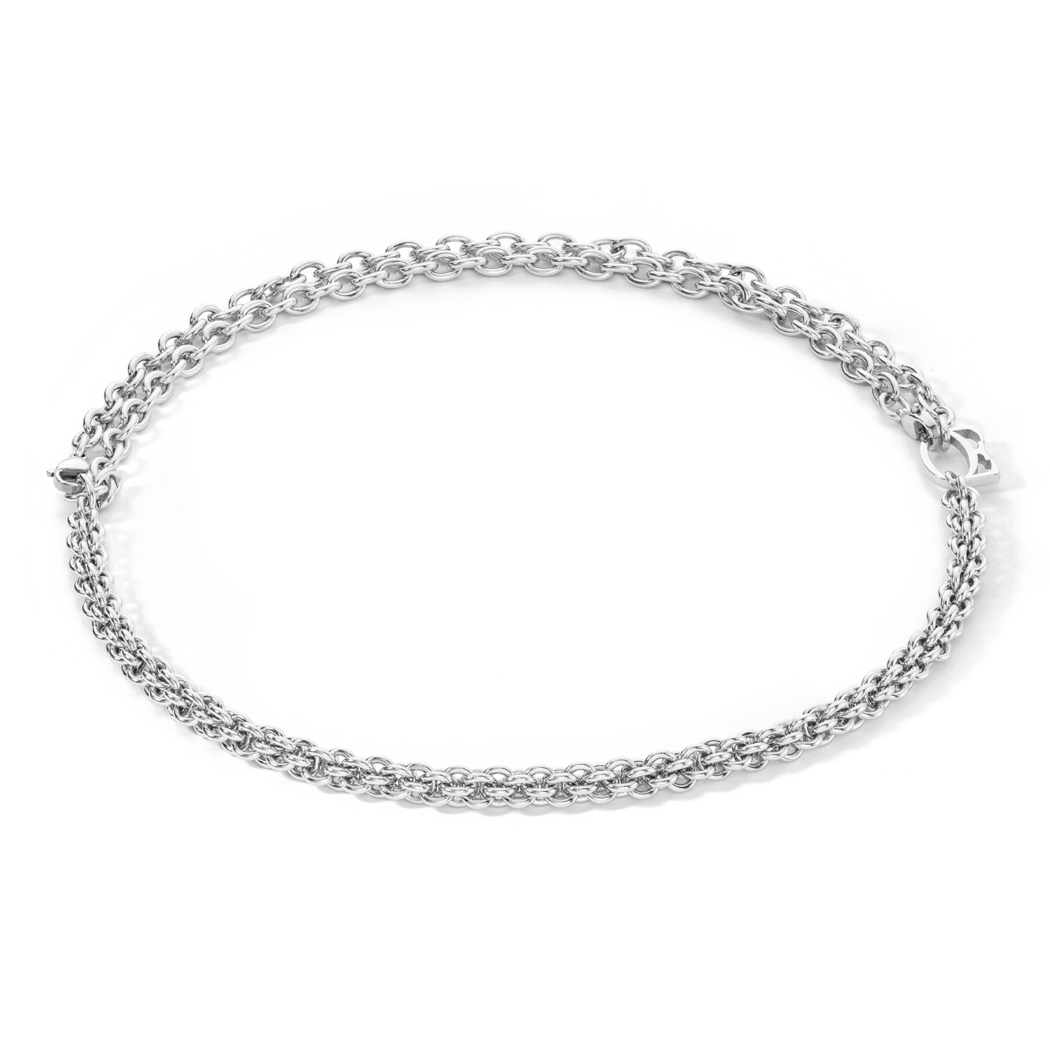 Discover the new "Mesh Chain silver" necklace from the COEUR DE LION Essentials collection. This versatile necklace is one of our exclusive multi-wear pieces of jewellery and offers countless styling options. The fine link chain and the round linked mesh chain made from high-quality stainless steel harmonise perfectly with each other and add an elegant touch to your look. Accentuated with the new stylish COEUR DE LION logo element, this chain is a real eye-catcher. Thanks to the two lobster clasps on the necklace, you can combine it with other pieces of jewellery and wear it in different ways. You can wear the necklace long and single-row or short and double-row. It is also ideal for the trendy layering look, allowing you to create new, exciting looks time and time again. The matching bracelet is available in the same design to complete your outfit in style.