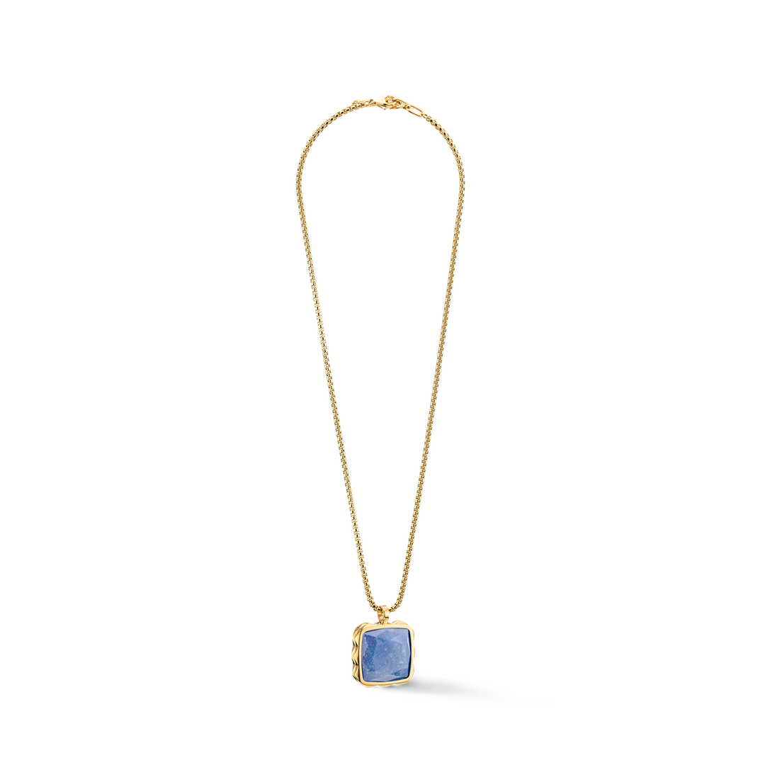 Square Amulet Necklace - Blue & Gold