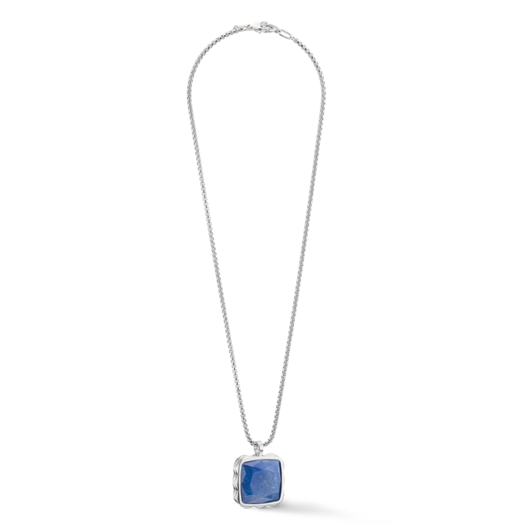 Square Amulet Necklace - Blue & Silver