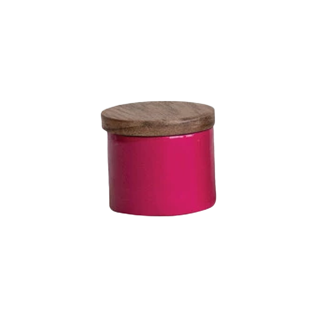Metal Mini Pinch Pot With Acacia Wood Lid - Hot Pink