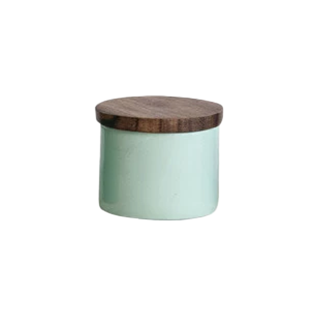 Metal Mini Pinch Pot With Acacia Wood Lid - Light Blue