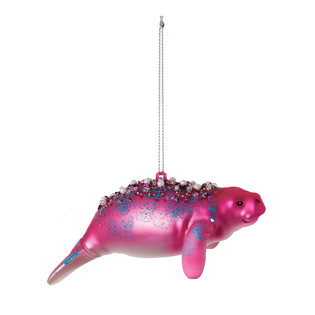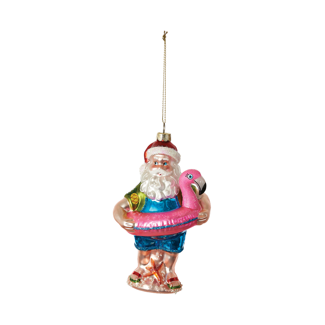 Beach Bum Santa Ornament - With Pink Flamingo Pool Float