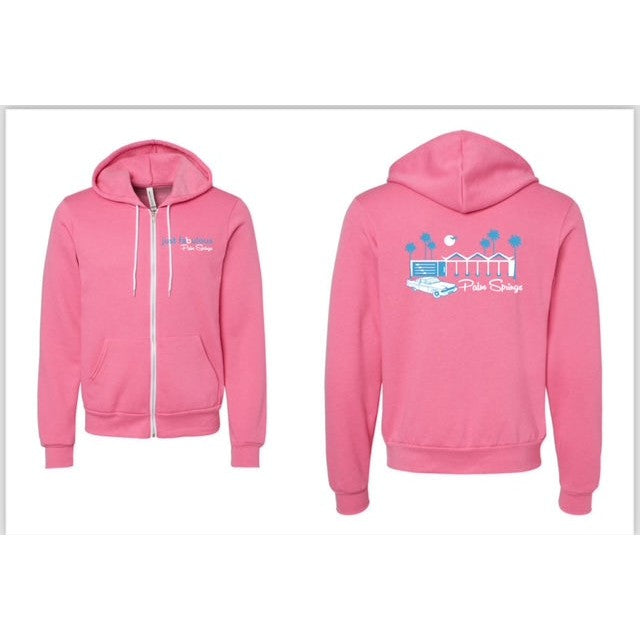 Zig Zag Zip Up Fleece Hoodie - Charity Pink/Teal