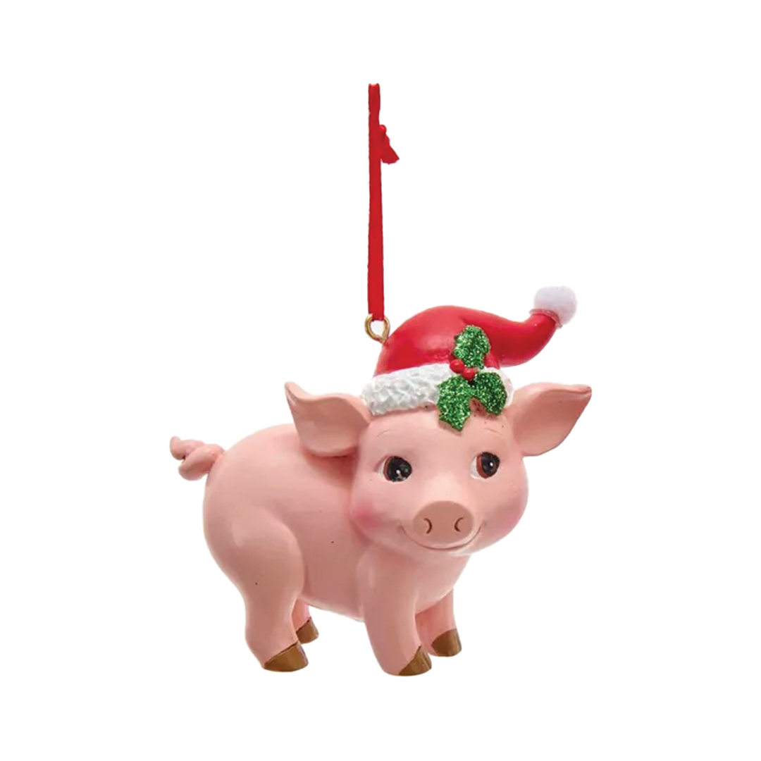 Pink Pig With Santa Hat Ornament - Standing