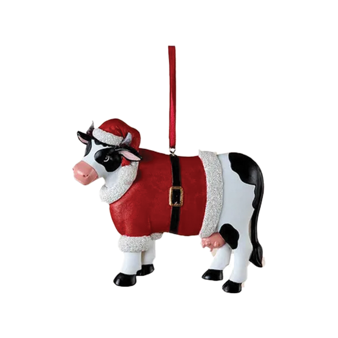 Christmas Cow Ornament - Santa Suit