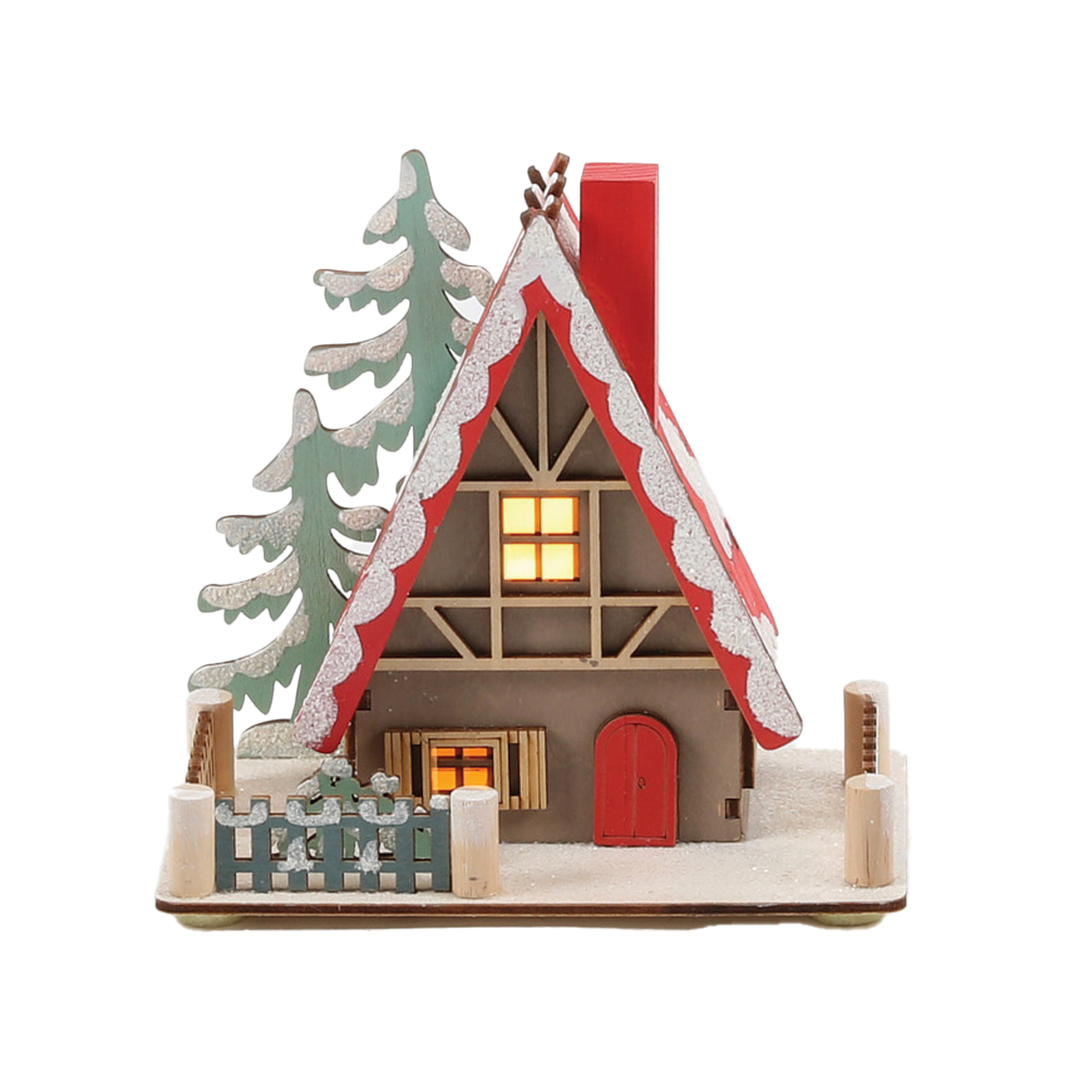 Ski Lodge Light Up Table Top Decor - Red Roof