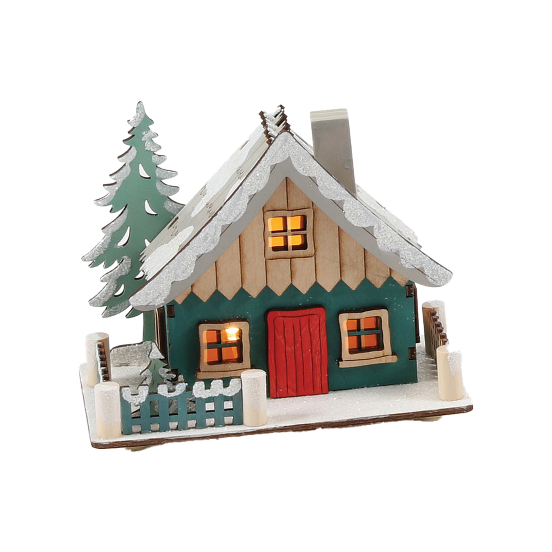 Ski Lodge Light Up Table Top Decor - Green Roof