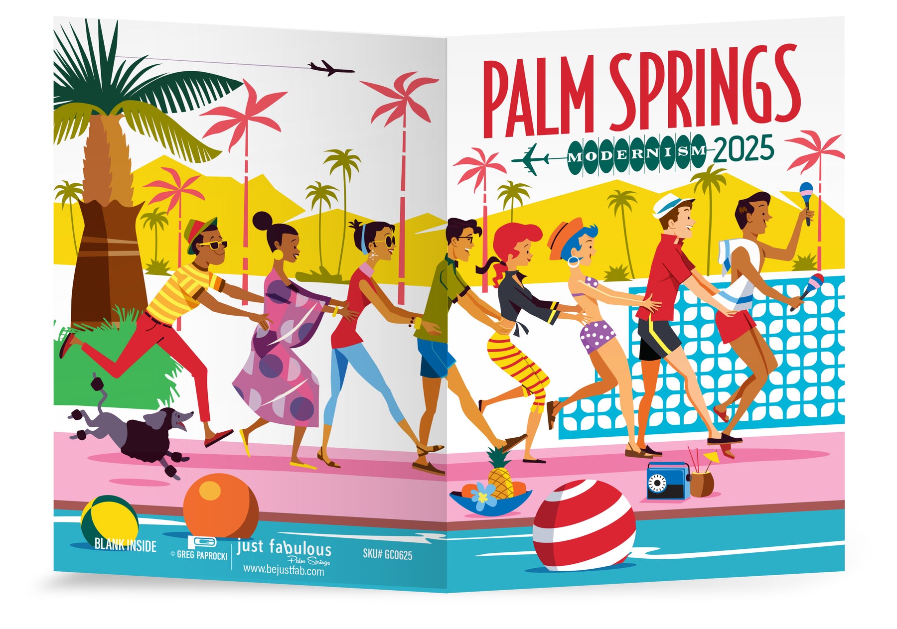 Part of our collaboration with acclaimed artist and best selling author, Greg Paprocki. This card is a limited edition, celebrating Palm Springs Modernism 2025. Exclusively made for Just Fabulous.