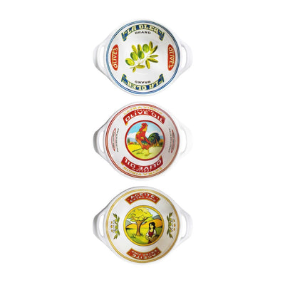 Inspired by the traditional artwork found on olive oil bottles and cans in the growing regions of Italy and California, we developed our Vintage Olive Collection. Pieces that are functional and useful, yet offer a rustic, unique look in their presentation. The family style serving pieces in the collection were created in the Tradition of shared culinary experiences and great vintages.
